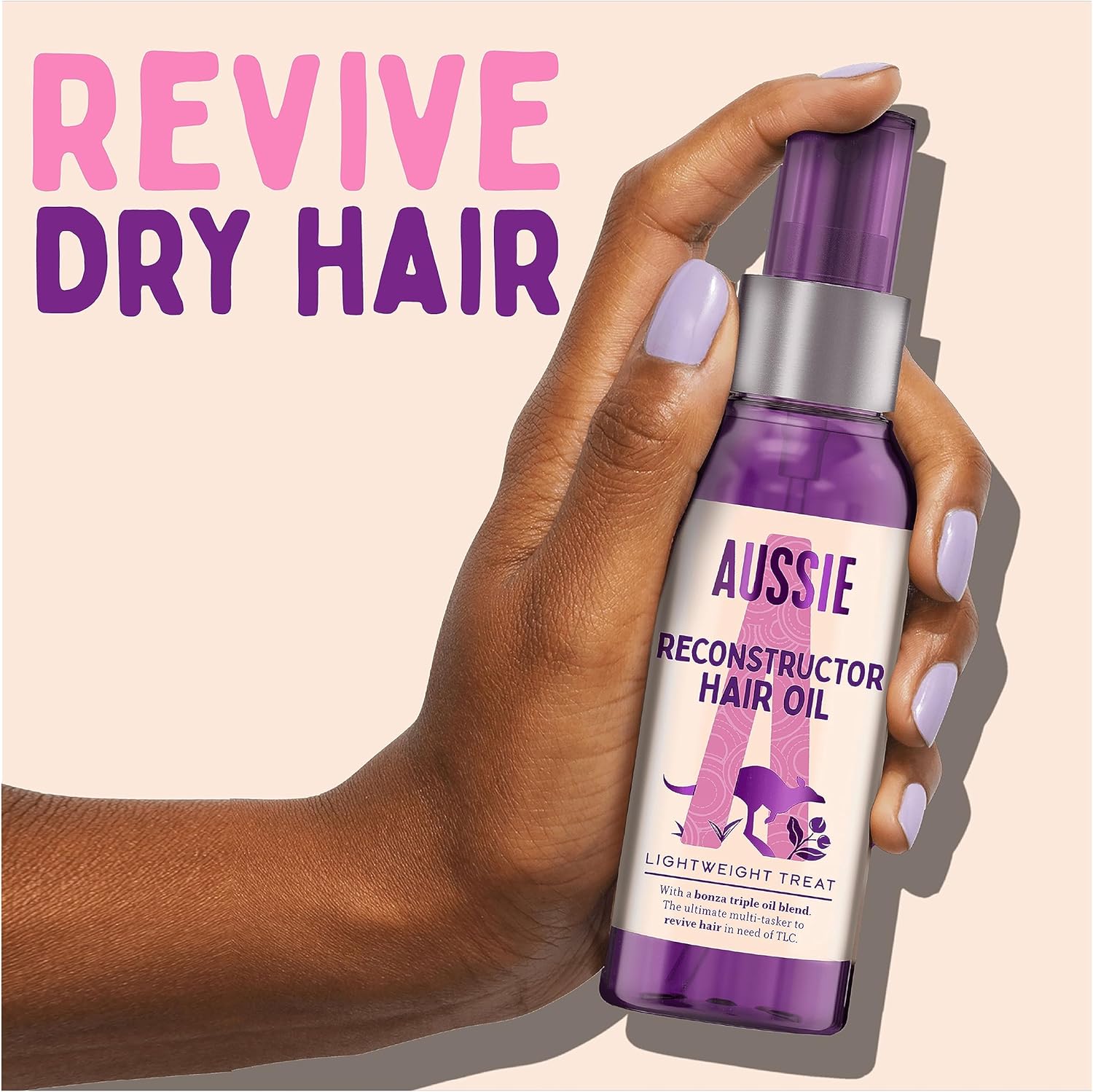 - Transform your hair with Aussie Reconstructor Hair Oil, featuring a nourishing blend of avocado, jojoba, and macadamia nut oils.