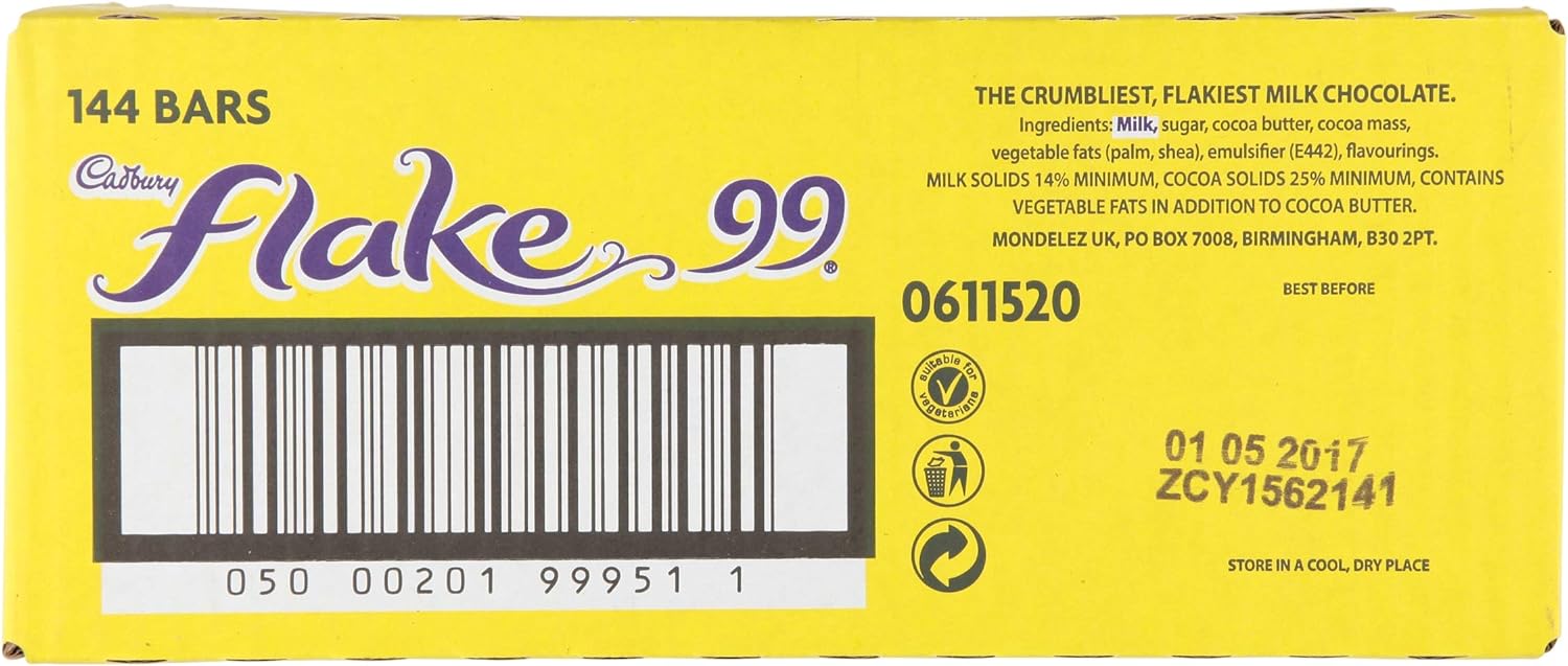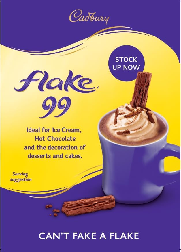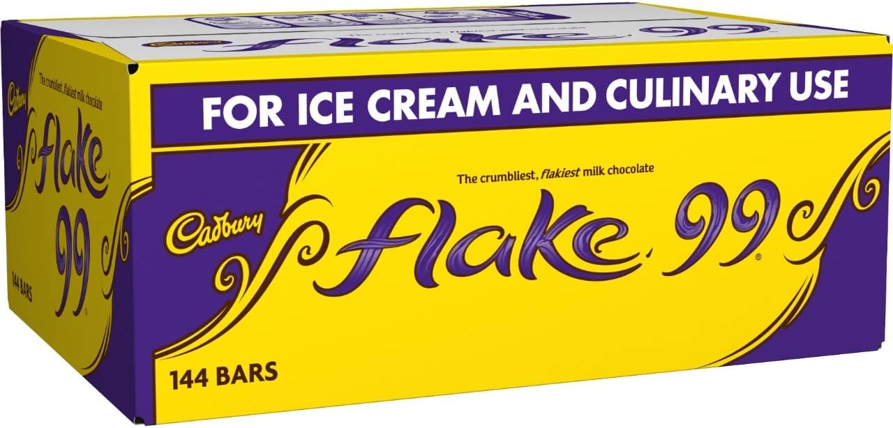 - The legendary Cadbury Flake 99 is now available in this mega pack, to go with all the ice cream you can serve – no cone is complete without it!