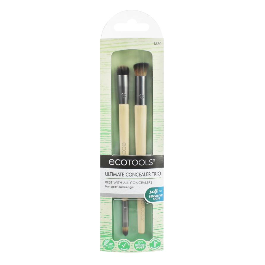 The ULTIMATE CONCEALER TRIO is a set of 2 brushes designed with 3 brush heads to cover and blend imperfections for an even and fresh complexion.