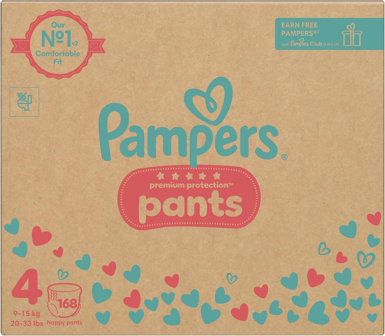 Pampers Premium Protection Nappy Pants, Size 4 (9-15kg / 20-33lbs) x168 Nappies