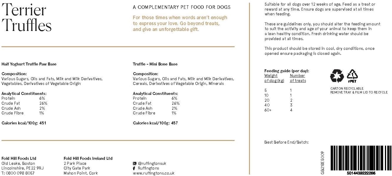 - Indulge your furry friend with Ruffingtons Terrier Truffles, a delicious treat tailored for your pet's enjoyment.