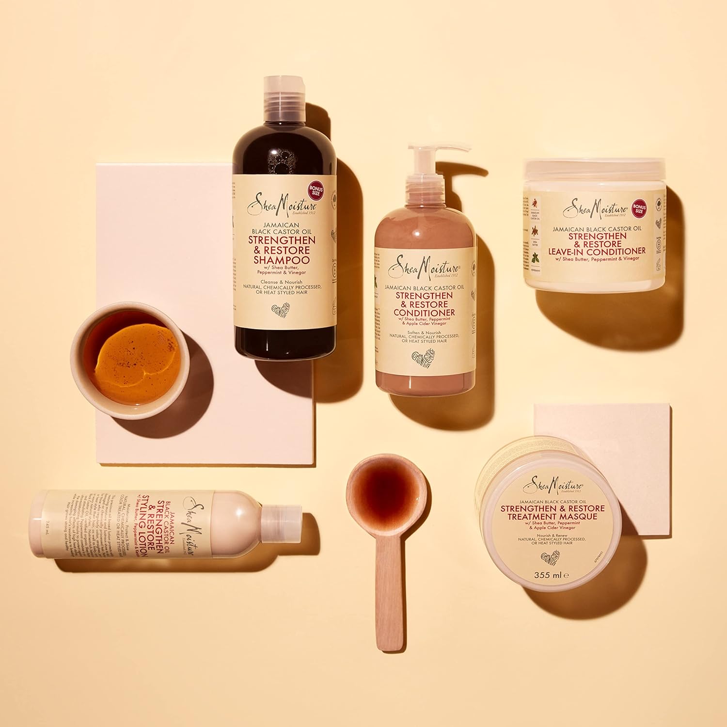 - Nourish and strengthen your hair with Shea Moisture Jamaican Black Castor Oil Strength and Restore Styling Lotion.