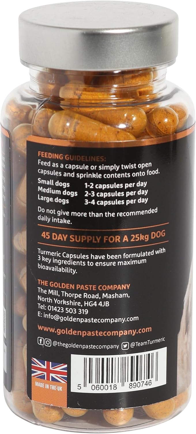 - UK made natural turmeric capsule joint supplements for dogs and cats, produced to the highest GMP standards. With 120+ years of experience in ethically sourced pet supplements, including our flagship product, The Golden Paste for dogs.