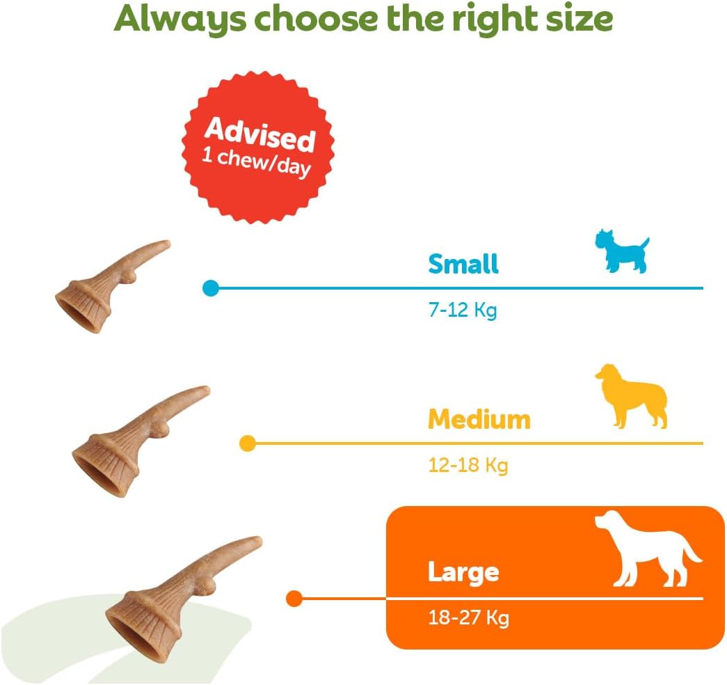 The 100% vegetarian treats are flavoured with natural chamomile extract, and their unique antler shape offers your dog a healthy challenge and keeps them chewing longer!